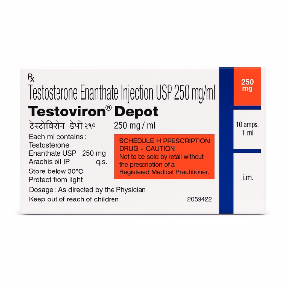 Testoviron Depot 250 Injection is mainly used to treat male hypogonadism, a condition in which the body does not produce enough testosterone. This medication belongs to the androgen class of drugs and contains testosterone enanthate.